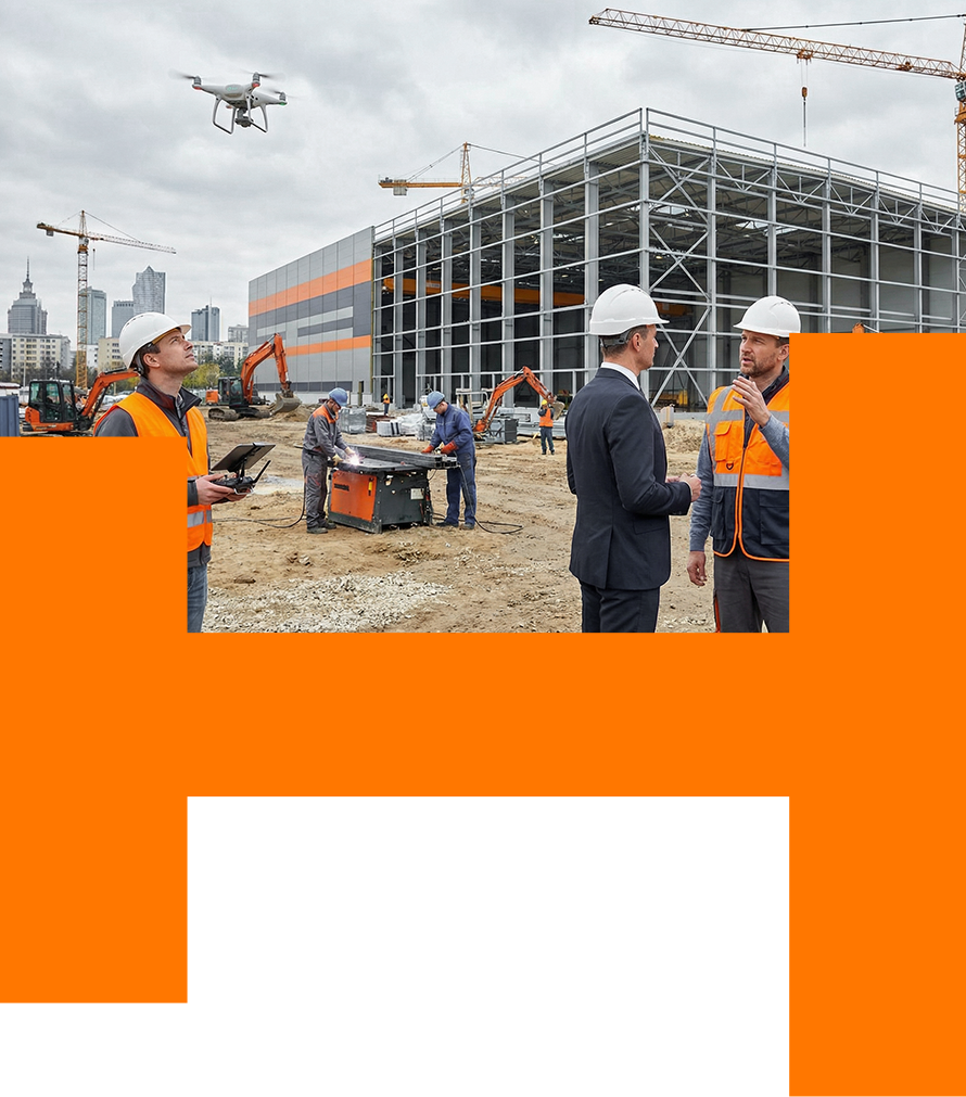 Łączymy inżynierskie doświadczenie z precyzją dronów. Wspieramy inwestorów od projektu, przez nadzór, aż po utrzymanie obiektu.