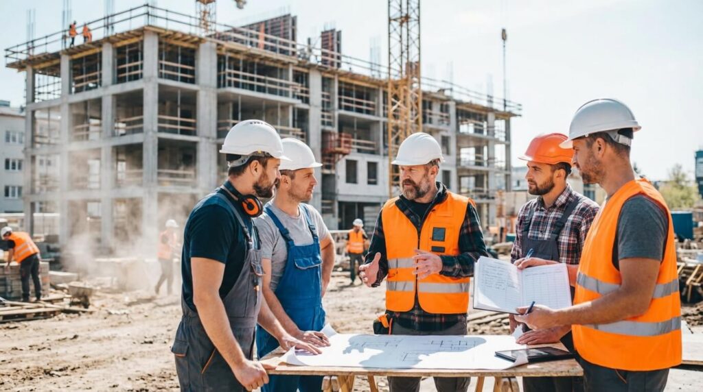 Kompleksowe prowadzenie procesu budowlanego. Koordynujemy branże, organizujemy roboty i prowadzimy pełną dokumentację w dzienniku budowy.